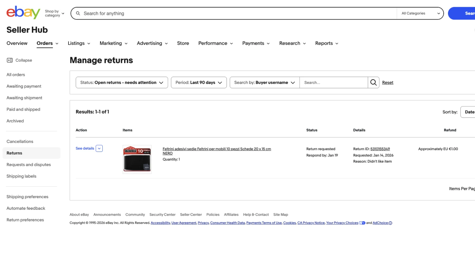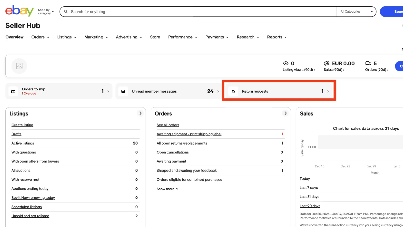 Go to your eBay Seller Hub. If you see a number next to "Return requests," you have pending cases that need attention.